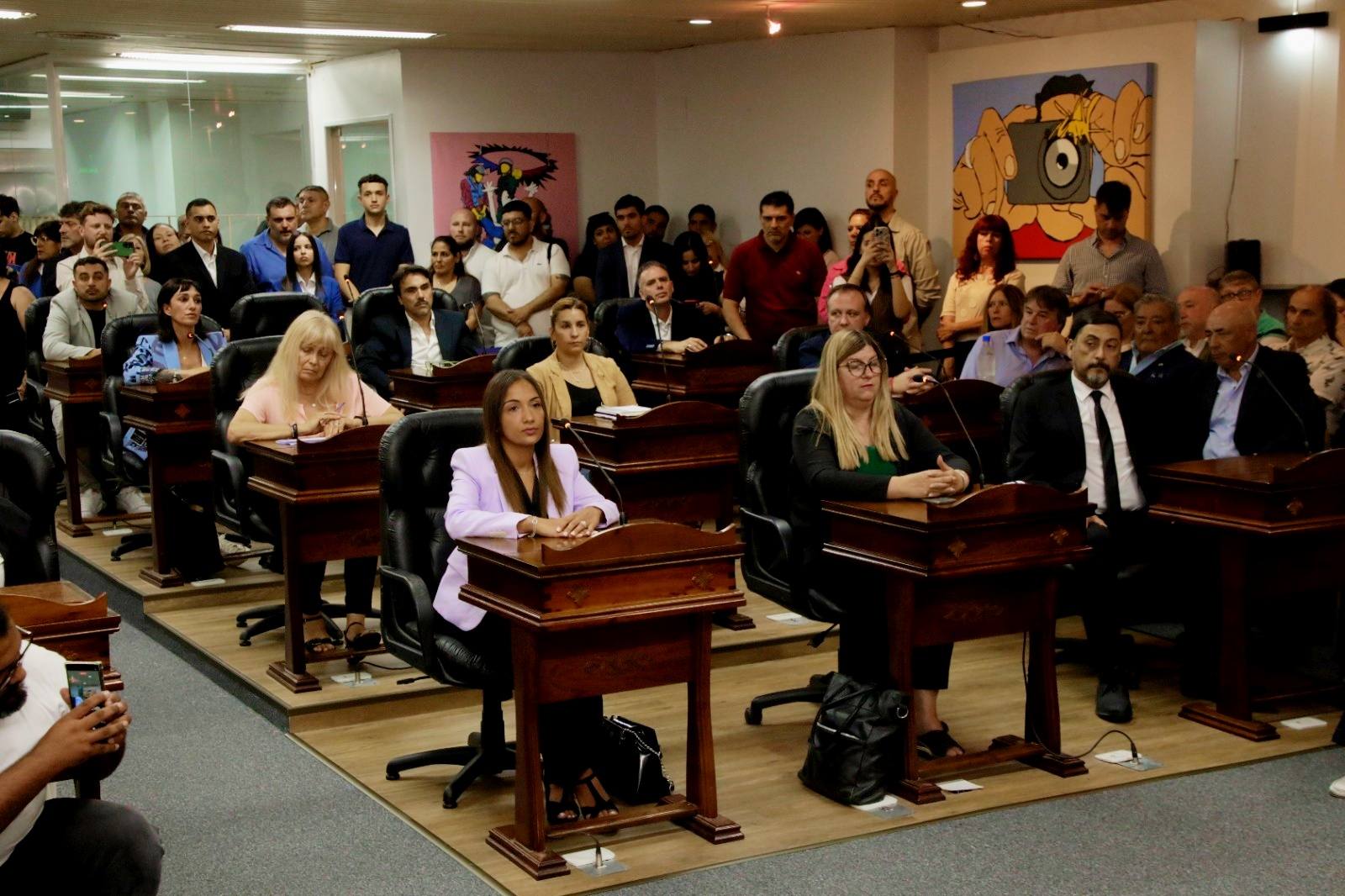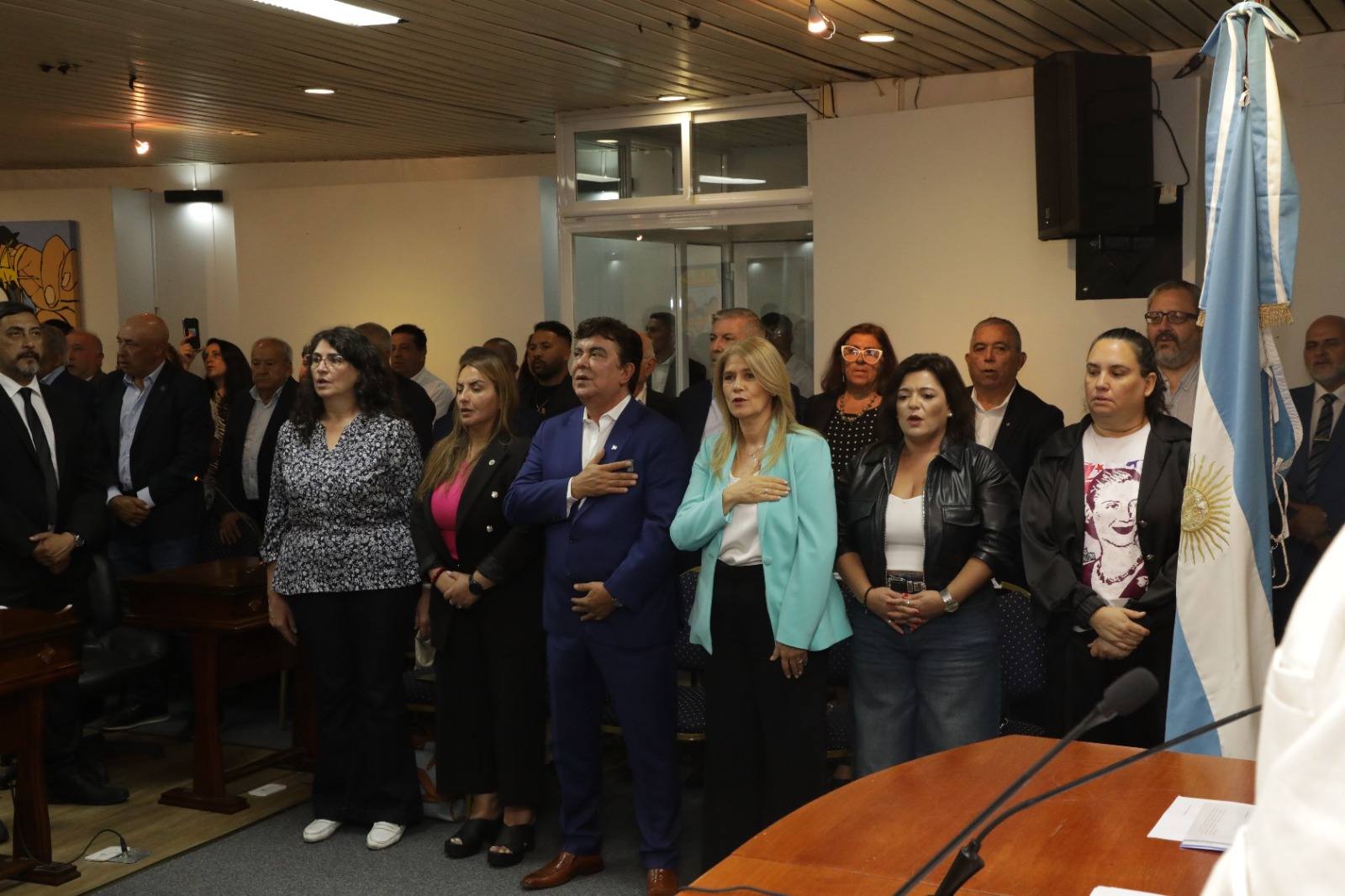Presidida por el concejal Sergio Landin y Brenda Vargas, en su carácter de concejal y concejala de mayor y menor edad, respectivamente, la sesión dio inicio con la presencia de invitados especiales, miembros del ejecutivo municipal, el Intendente Fernando Espinoza y la Vicegobernadora Verónica Magario, quienes fueron los encargados de izar la bandera nacional.